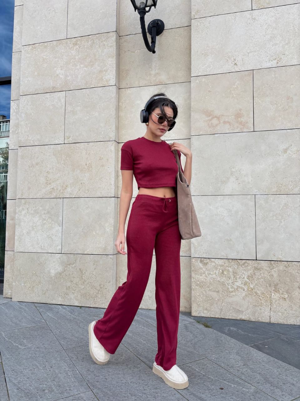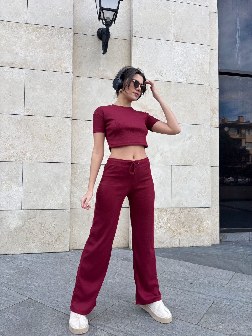 Yumuşak dokusu ve modern kesimiyle bu kaşkorse takım, dolabının yeni favorisi olmaya aday. Bol paça pantolonuyla salaş ama stil sahibi bir duruş yakala. İster evde chill modunda ol, ister dışarı çık – tarzından ödün verme.