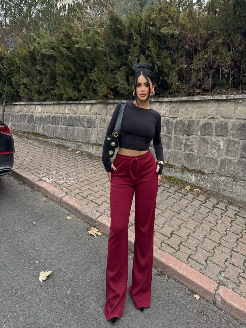 Bağıcıklı Kaşkorse Kumaş Geniş Paça Palazzo Pantolon