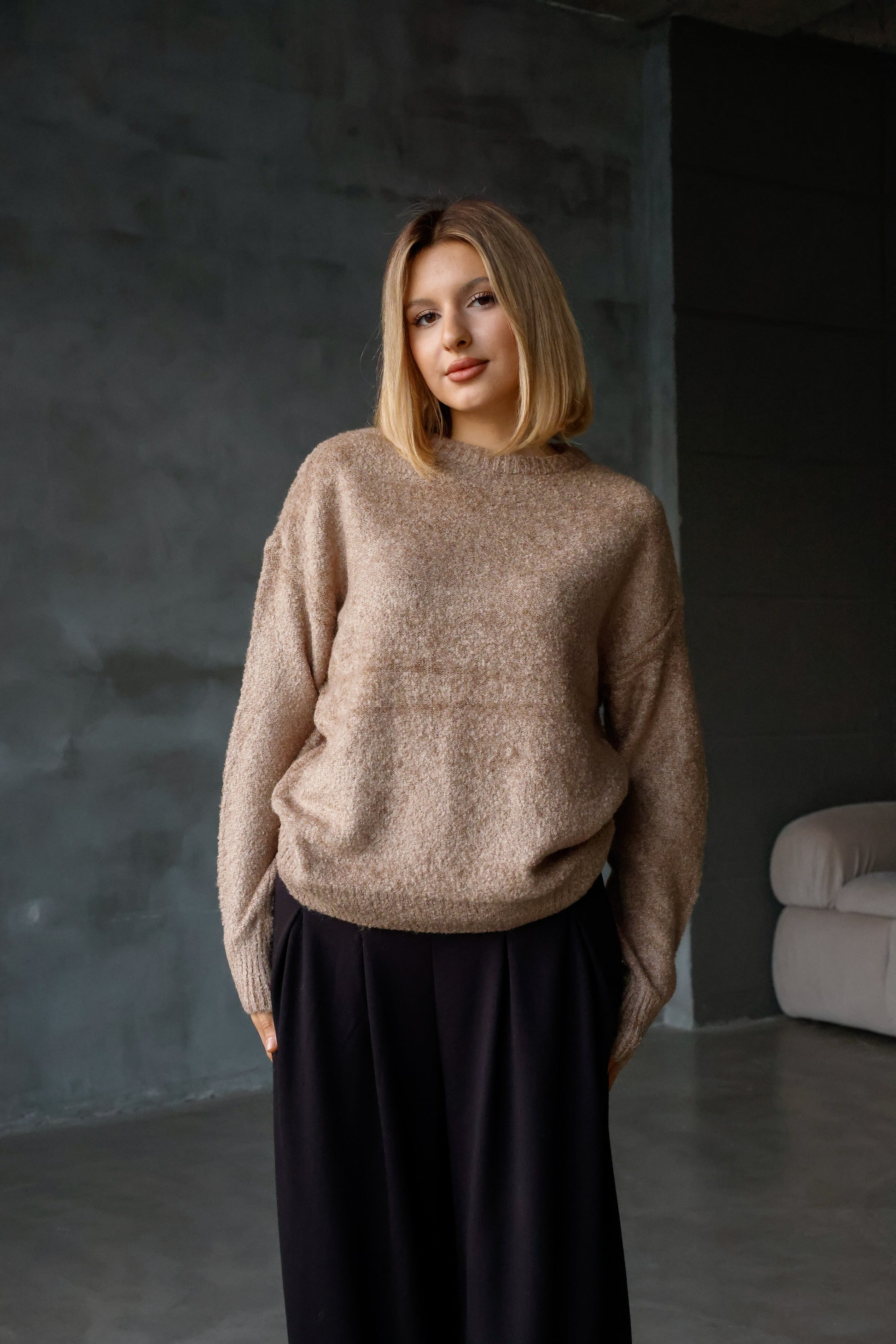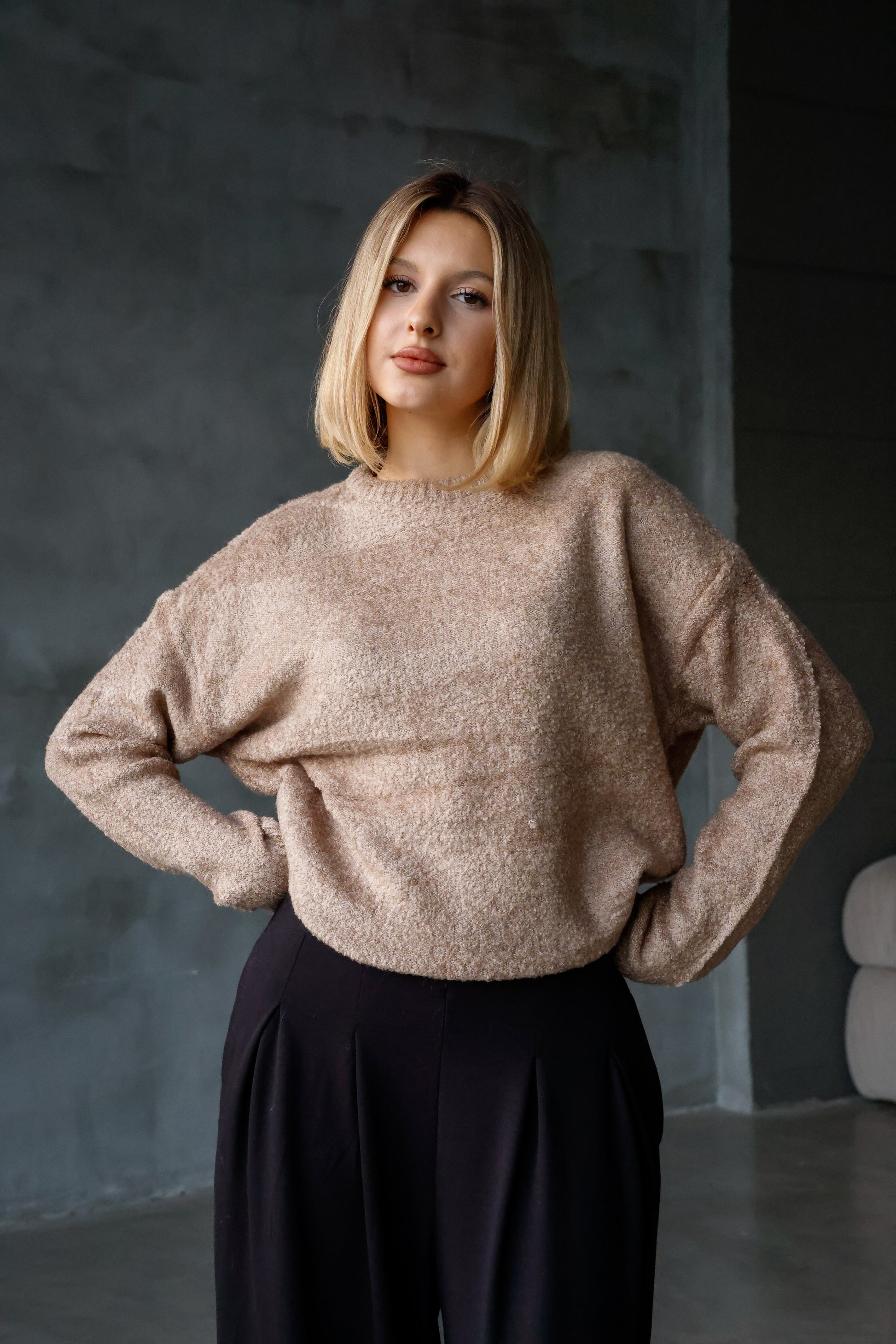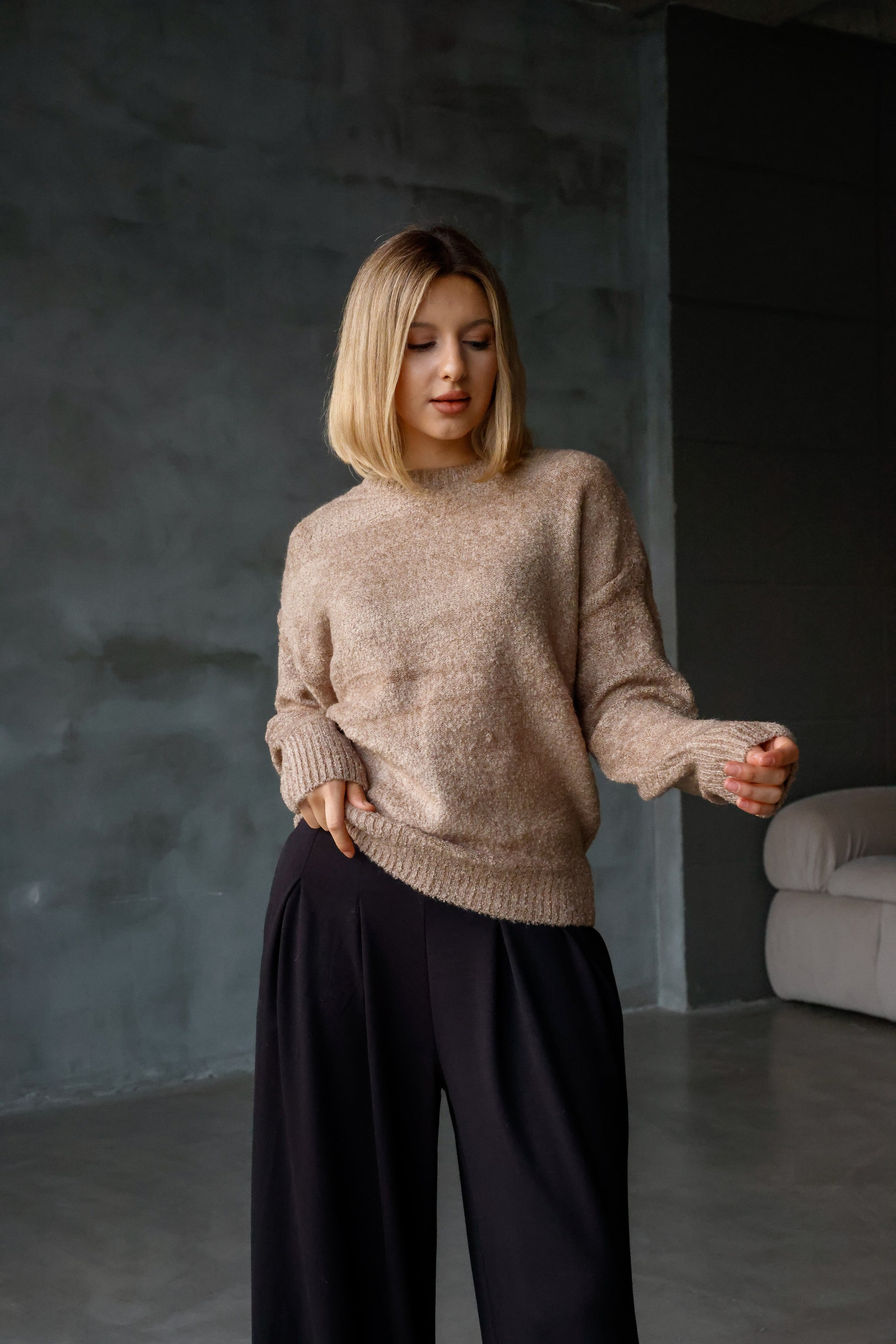 Bisiklet Yaka Oversize Örgü Detaylı Triko Kazak