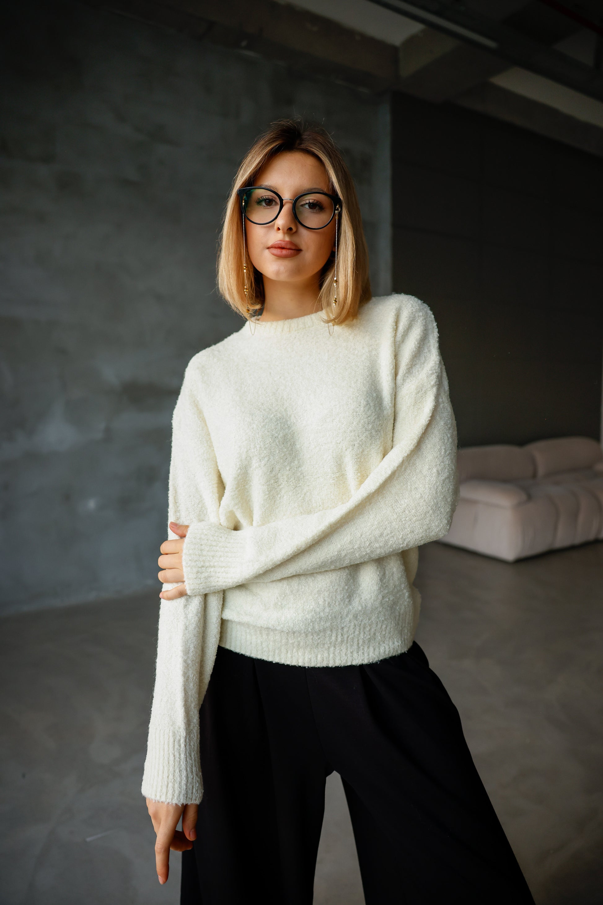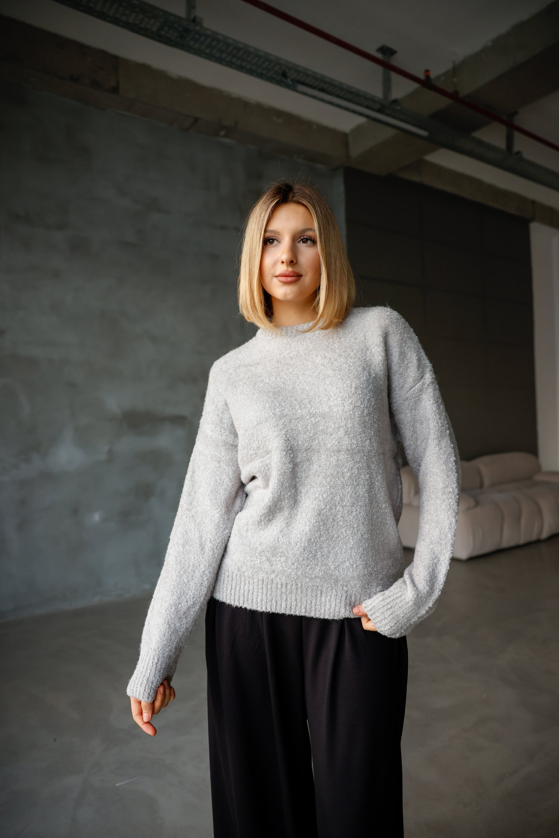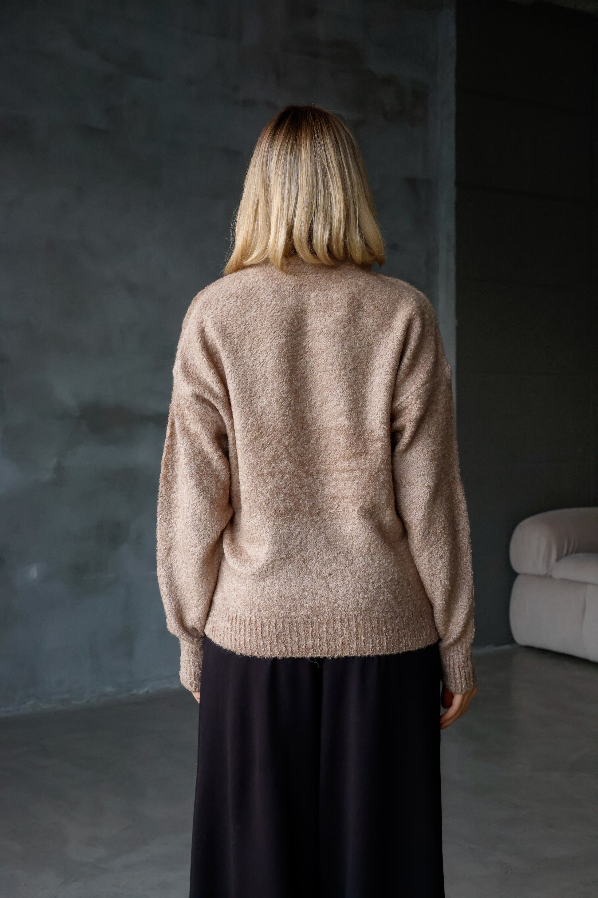 Bisiklet Yaka Oversize Örgü Detaylı Triko Kazak
