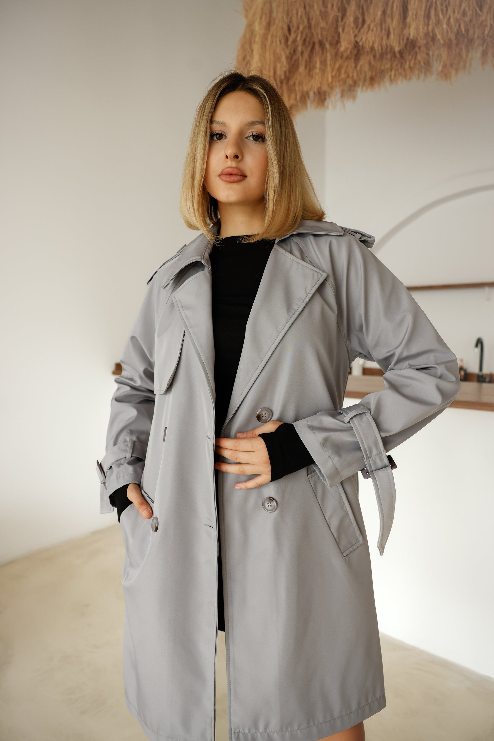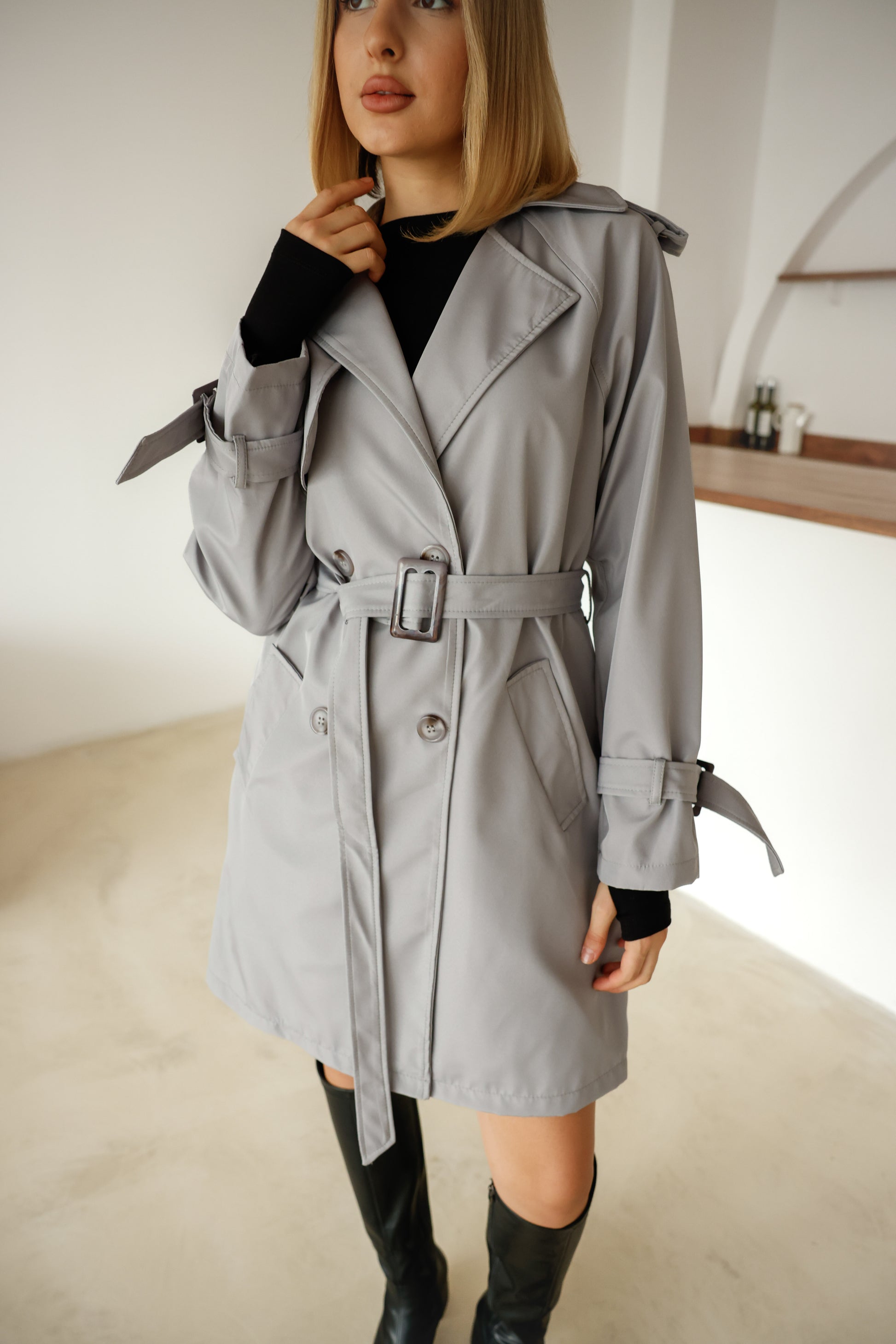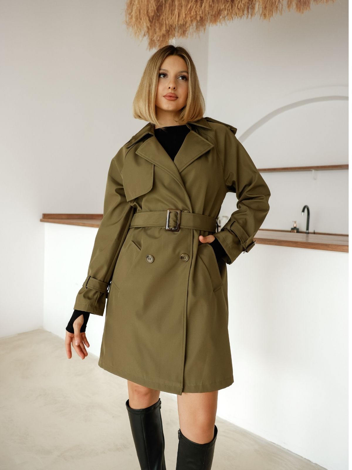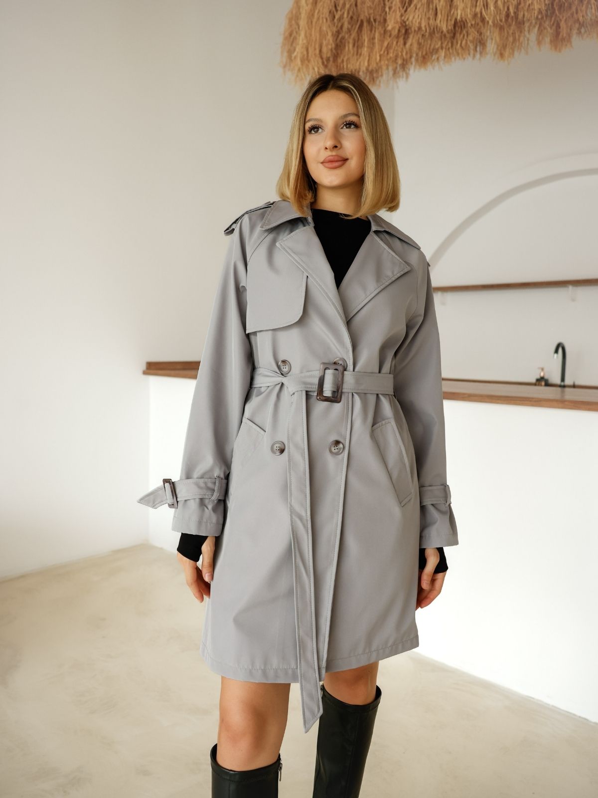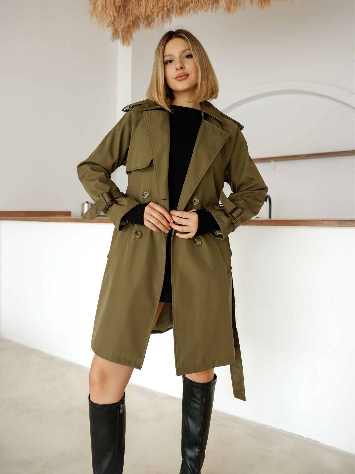 Çift Düğmeli Orta Boy Şık Trençkot İçi Astarlı Yüksek Kalite