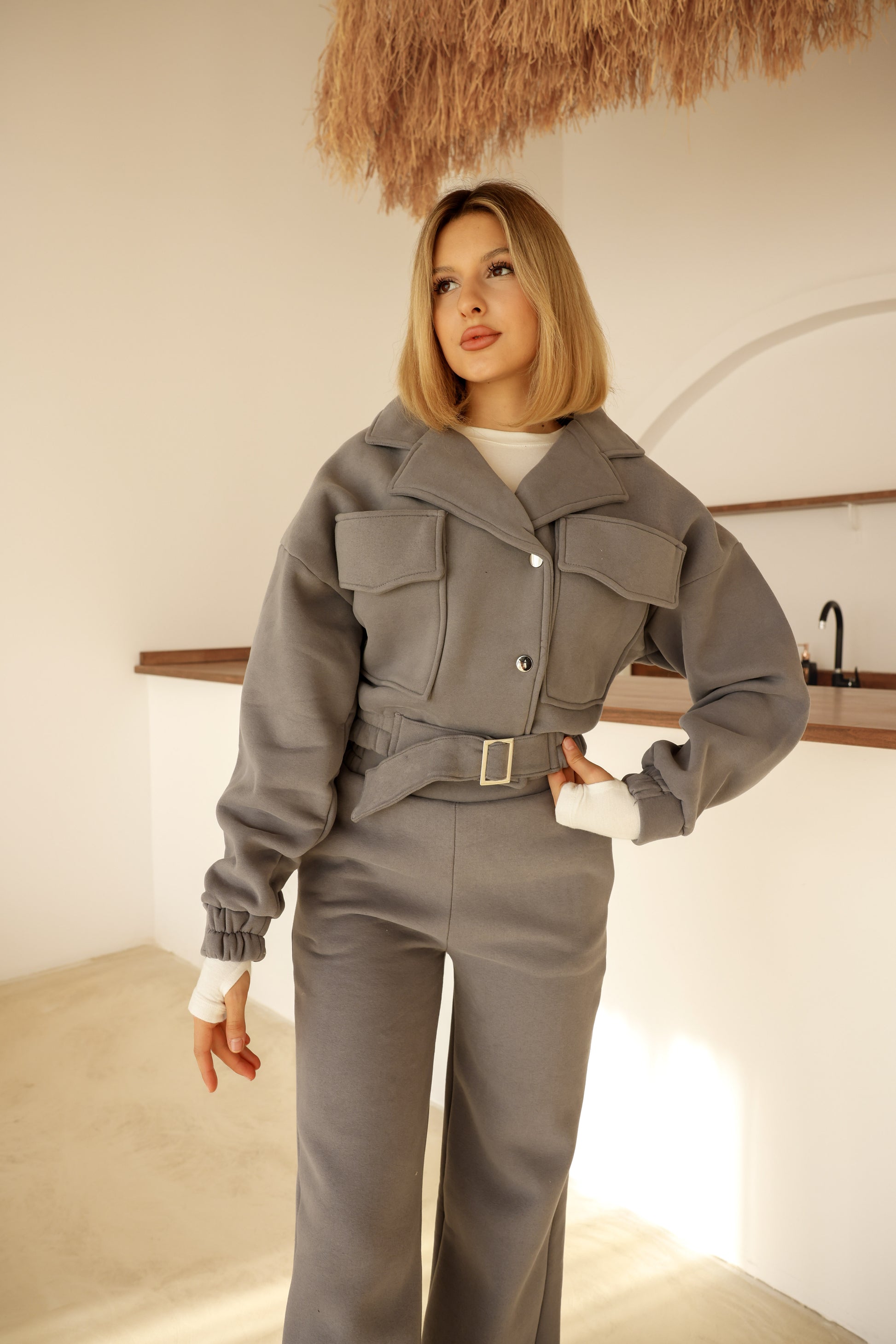 Kemer Detaylı Yüksek Kalite Pamuk Ceket
