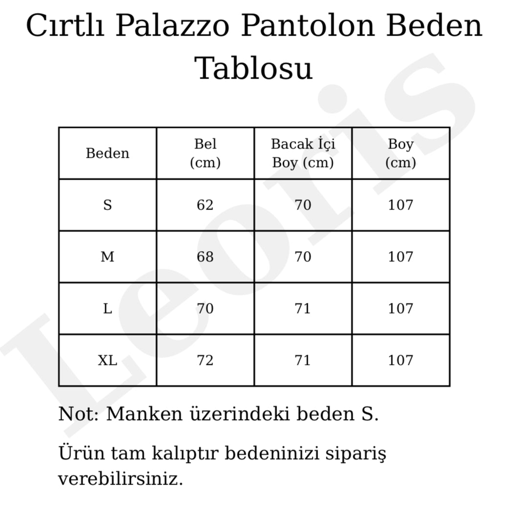 Modern tasarımı ve maksimum konforu bir araya getiren bu palazzo pantolon, stil sahibi duruşunla gün boyu fark yaratman için tasarlandı. Likralı yapısı sayesinde vücuda mükemmel uyum sağlarken, cırt kapama detayı ile kolay ve pratik bir kullanım sunar. Siyah rengiyle her stile uyum sağlayan bu pantolon, dolabının vazgeçilmezi olmaya aday!